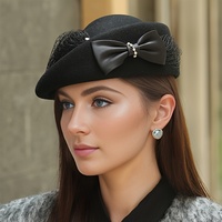 Của phụ nữ nhẹ Beret hat len màu đen lưới với tôn tạo Bow British retro họa sĩ Thanh lịch mũ nón